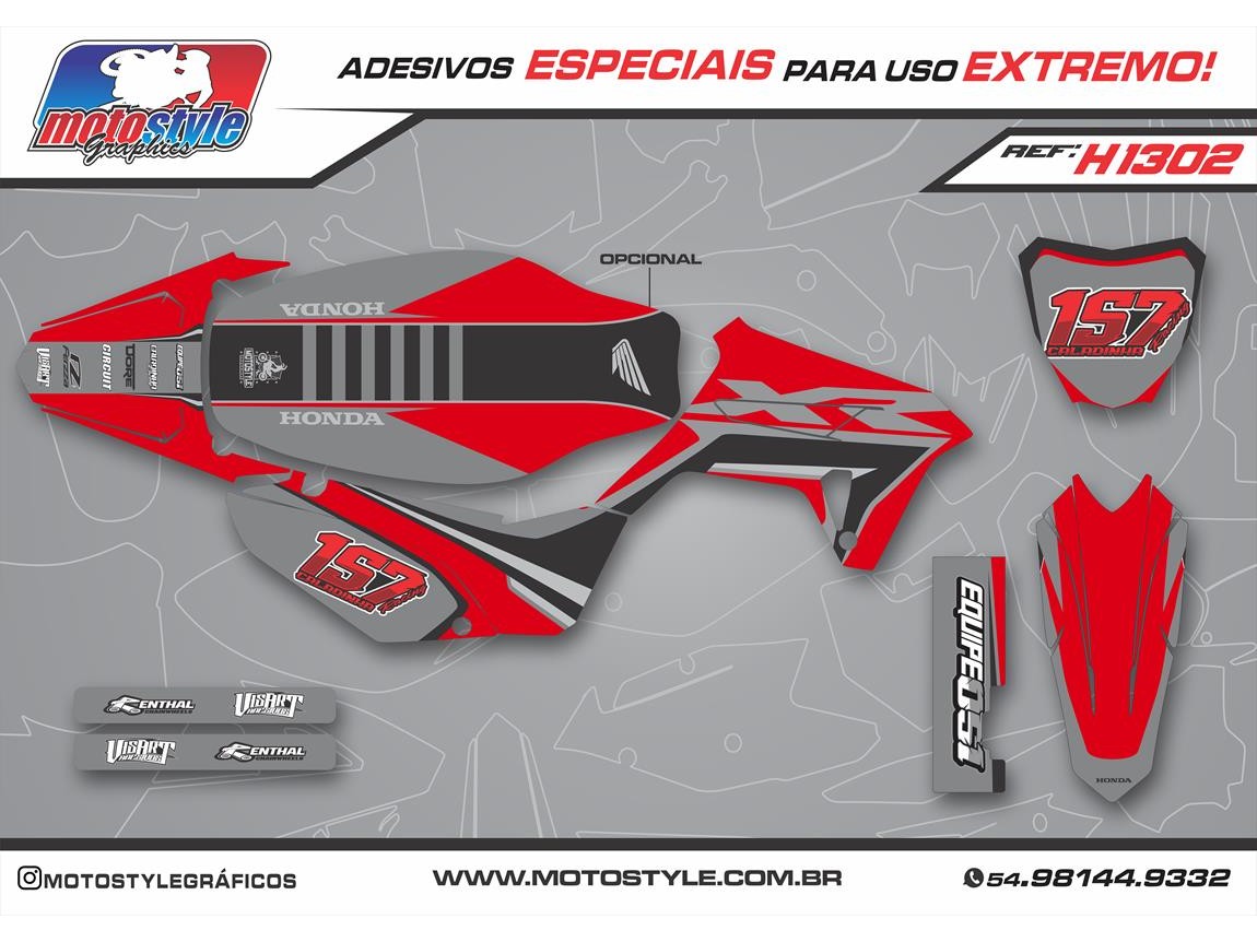 1º Passo : Escolha o tipo de gráfico que você quer ( fosco, brilho,metalizado ou full metalizado ) e o modelo de arte, que ajustaremos para os moldes da sua moto. Todos os gráficos podem ser feito alterações de nome, números, logos, cores e etc, conforme o cliente achar necessário. Por favor nos informar se tiver alguma peça ou detalhe fora de original da sua moto para que possamos acertar antes de fazer o desenho..