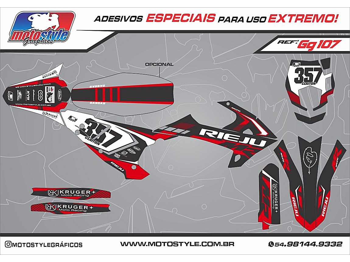 NO KIT COMPLETO ESTÁ INCLUSO ADESIVOS DE : Aletas de tanque , paralama dianteiro e traseiro , farol ou number plate, protetor de canela ( invertida ) ou canela de suspensão ( susp normal ) , tampas laterais traseiras ,caixa de ar e balança.