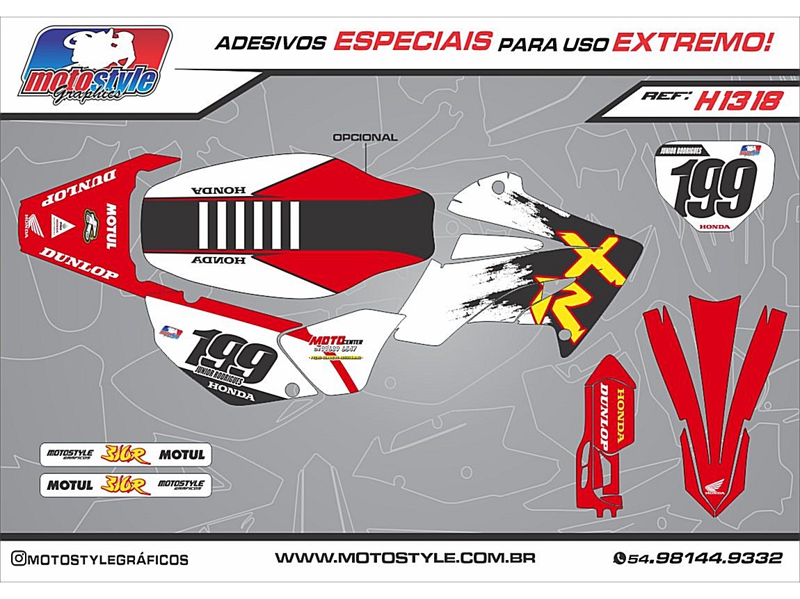 1º Passo : Escolha o tipo de gráfico que você quer ( fosco, brilho,metalizado ou full metalizado ) e o modelo de arte, que ajustaremos para os moldes da sua moto. Todos os gráficos podem ser feito alterações de nome, números, logos, cores e etc, conforme o cliente achar necessário. Por favor nos informar se tiver alguma peça ou detalhe fora de original da sua moto para que possamos acertar antes de fazer o desenho..