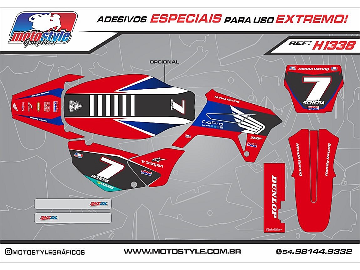 1º Passo : Escolha o tipo de gráfico que você quer ( fosco, brilho,metalizado ou full metalizado ) e o modelo de arte, que ajustaremos para os moldes da sua moto. Todos os gráficos podem ser feito alterações de nome, números, logos, cores e etc, conforme o cliente achar necessário. Por favor nos informar se tiver alguma peça ou detalhe fora de original da sua moto para que possamos acertar antes de fazer o desenho..