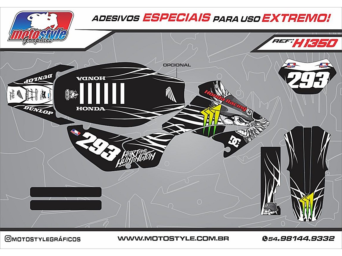 1º Passo : Escolha o tipo de gráfico que você quer ( fosco, brilho,metalizado ou full metalizado ) e o modelo de arte, que ajustaremos para os moldes da sua moto. Todos os gráficos podem ser feito alterações de nome, números, logos, cores e etc, conforme o cliente achar necessário. Por favor nos informar se tiver alguma peça ou detalhe fora de original da sua moto para que possamos acertar antes de fazer o desenho..
